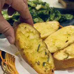 The garlic bread is toasted to order, very crispy and full of garlic butter flavor, which is so good whether you eat it or order a curry