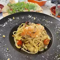 I ordered a $198 meal for two, which included a 9-inch pizza, a snack and two drinks! I ordered a Parma ham parma ham pizza🍕, the pizza topped with tomatoes🍅, rocket, buffalo cheese🧀, BBQ chicken wing barbecue sauce chicken wings, and ordered a bottle of oolong tea and beer🍻! Then add a plate of shrimp 🍤 garlic olive oil spaghetti 🍝, the shrimp 🦐 are all big, the pasta is very bouncy!