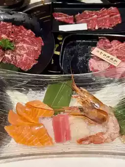 Sashimi, skewers, hot pot in order ate once, encore a small amount of sashimi and 3 plates of meat, was full to eat ~ only left to eat dessert stomach.