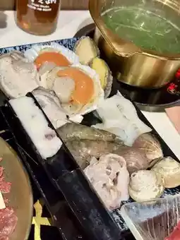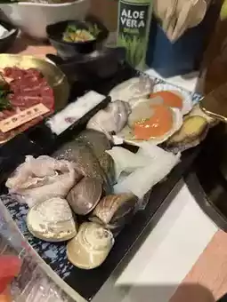 The hot pot we mainly eat beef and seafood, including unlimited additions of bacon, scallops and oysters in the meal, as well as large white mussels, crispy catfish slices, beef cypress, prawns, etc., all very very fresh.