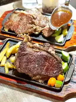 The sirloin steak is equally generous in portion, with a slightly charred exterior. The inside remains tender and pink, preserving the beef's tenderness. The texture and beef flavor are rich and elastic, and the gravy enhances its freshness.