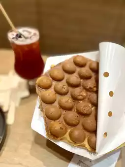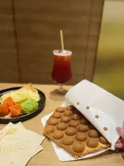 Finally, let's have a Hong Kong-style snack waffles 💛, with a special drink of blueberry orange and red, to relieve the heat and relieve thirst. After a break after afternoon tea, it's the rhythm of the rush 😆.