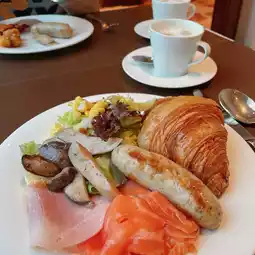 The next day, we had breakfast in the function room on the first floor of the hotel. Although the location was changed, the service staff was very considerate and allowed us to enjoy a delicious breakfast in a quiet corner. Egg benedict, smoked salmon, bread and Chinese dim sum were all super delicious! Especially the freshly made shrimp dumplings and siu mai, which were chewy and really satisfying.