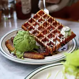 Flame🔥Cinnamon Banana Waffle🧇 with Matcha Ice Cream $88
