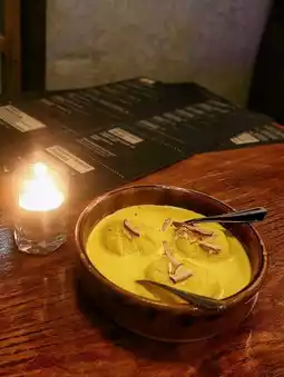 🍡Rasmalai (Hk$48): Three large Indian sweet milk balls soaked in a thick mushy sweet soup, each full of milk and spices, super sweet silk☘️