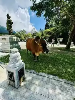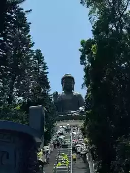 It was a very pleasant trip, but it was really sunny that day. Fortunately, there were many shops in Ngong Ping Market where you could rest and eat, and you could also go shopping in many various souvenir shops. The most special thing is that you can meet buffaloes on the roadside when heading towards the Big Buddha. And we saw the buffalo very close. The further we walk towards Po Lin Monastery, the quieter place becomes, and we don’t feel at all noisy with the crowds of tourists.