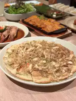 The seafood pancake is my favorite. It is thin and crispy, and is paired with seasonal seafood of various flavors. It tastes great.