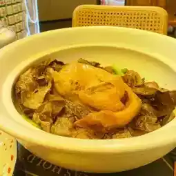 Named after the homophone, it uses rice wine and is a signature dish. In fact, the lotus leaves wrapped in the whole chicken, when served, the clerk will pour rice wine and then light the fire, you will see ''slight'' fire light (but the fire is not big enough), and the chicken stuffed with golden needle mushrooms, very tasty. Chicken though not lost.