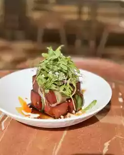 A new vegetarian restaurant has recently opened in Tsuen Wan, offering a variety of dishes from spicy watermelon salad, corn soup, sourdough pizza to risotto. It's a great spot for vegetarians to take photos and enjoy a meal with friends. The restaurant is located next to the Petrified Wood Garden, featuring a wood theme and showcasing million-year-old petrified wood collections. You can also enjoy a nice coffee from the nearby café.