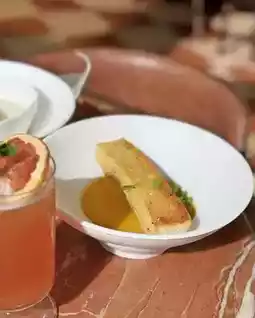 The garlic bread is fragrant, crispy, and delicious. The corn soup is rich in vegetable sweetness, with a smooth texture, leaving you very satisfied.