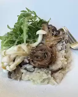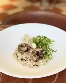 Truffle risotto is a common dish for vegetarians dining on Western cuisine. When served, Parmesan cheese is freshly grated on top, and you can smell the truffle aroma. Besides the mushroom rose, it also uses more Chinese-style mushrooms like hon-shimeji and white mushrooms. The portion is moderate, and the texture is just right, with a mild flavor.