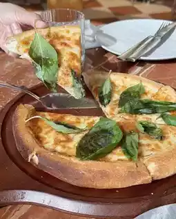 The restaurant uses a sourdough pizza base, which is aromatic and chewy. This classic buffalo mozzarella pizza looks simple but is rich in cheese and has a sweet and sour tomato flavor, overall of high quality.