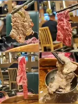 We ordered the Australian Premium Wagyu All-You-Can-Eat (before 1930 on weekends $298 per person), and for less than $300 per person, you can eat unlimited Australian M5 Wagyu Beef Shoulder Roll, SRF American Black Beef Hind Leg, Angus Beef Short Rib, Hand-Cut Beef Chuck, and Premium Beef Belly. Each person also gets two Australian M9 Wagyu Beef Balls, which are not only chewy but also bursting with flavor. The value for money at this price is definitely high. The M5 Wagyu Beef Shoulder Roll is the most tender, the SRF Black Beef Hind Leg has the richest flavor, and the Angus Beef Short Rib has the highest fat content.