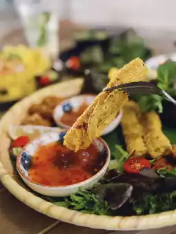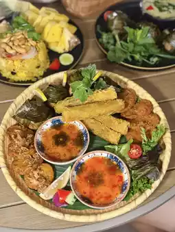 Snacks include shrimp cake🦐, fish cake🐟, spring rolls🫔 and chicken nuggets with orchid leaf🥠. The shrimp cake is crispy on the outside and tender on the inside. The shrimp meat is fresh and fragrant. The fish cakes have a more prominent spice flavor and are more bouncy. The spring rolls are crispy on the outside and retain their moisture on the inside. They are very fragrant! The pandan leaf chicken exudes a fragrant aroma, the chicken is tender and juicy. Overall, the four snacks were very tasty😍