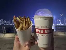 Enjoying Five Guys While Watching Hong Kong's Night View