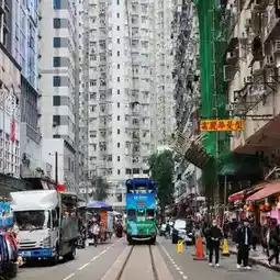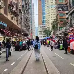 #Chun Yeung Street Market: A place that preserves the authentic 80s(?) Hong Kong that those in their 30s and 40s remember. A narrow central street flanked by market buildings on both sides, where people walk, taxis pass, and trams pass by. A photo of the tram approaching from the middle of the street, taken across the market, is the signature photo of !