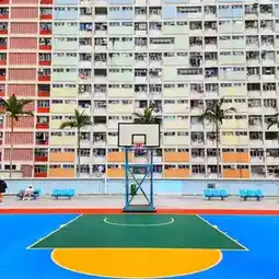 #Choi Hong Apartment: Rainbow-colored apartments and a basketball court painted in primary colors. Due to the imminent redevelopment, photo opportunities won't last long. Definitely visit on a sunny day for the best view!