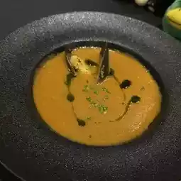 The seafood lobster soup is rich in flavor, with mussels that taste of the sea, plump and sweet.