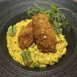 Japanese Fried Oysters with Pumpkin Cream Sauce Risotto
