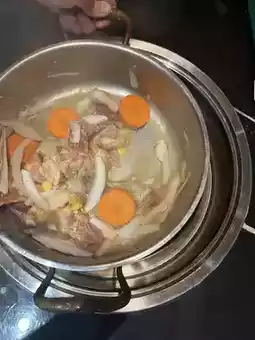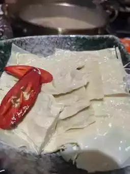 I personally like to drink old-fashioned soup, this time order this flaming coconut chicken soup, watching the clerk first stir-fry chicken pieces and coconut meat, light fire stir-fry, then add a few fresh coconut water, a distance has smelled the aroma, the soup boils to drink, rich, sweet mouth, can not help but drink a few bowls before starting hot pot!