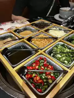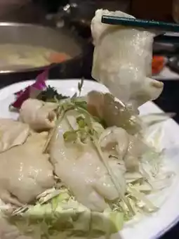 The hot pot ingredients include fresh shrimp wontons, signature fresh goose intestines, flower jelly, duck blood, fried bamboo shoots and Taiwanese rice noodles. They are all very fresh.