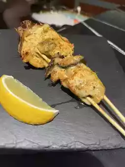 We also ordered Hiroshima oyster skewers, skewered with bamboo skewers, the surface of the oysters is slightly crispy, golden in color, juicy in the mouth, with a faint savory flavor, with lemon juice, very delicious.