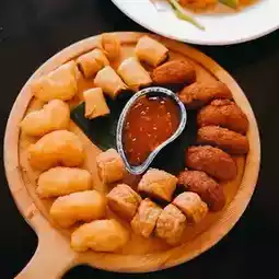 There are 6 pieces each of 4 snacks, including Thai chicken rolls, fish cakes, shrimp cakes and vegetarian spring rolls, with Thai spicy sauce. The best is the chicken rolls, with some tom yum flavor and Thai spices, very special!