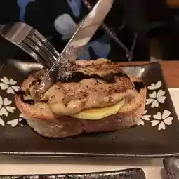 ▫️ Caramel Green Apple Foie Gras Toast ~ The thick layer of foie gras on top is rich and creamy, melting in your mouth; the toast at the bottom is crispy and delicious; the middle layer has a slice of apple 🍎 with caramel, bringing a tangy flavor that helps balance the richness of the foie gras. The most surprising part is the cheese 🧀 injected in the middle, adding texture to the caramel green apple foie gras toast.