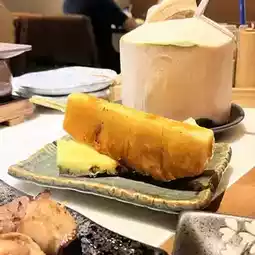 ▫️ When eating skewers, people usually drink beer or Ramune soda. Here, you can choose coconut water, which is cooling and thirst-quenching, especially refreshing and relieving greasiness when eating skewers.