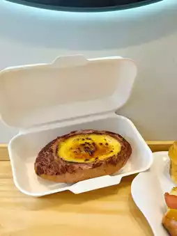Exclusive first 💯 The appearance sells similar to the shape of purple sweet potato, the French bread is filled with a large amount of purple sweet potato puree, paired with sweet pudding, baked and then sprinkled with sugar burnt into a crispy caramel surface, crispy outside, sweet and soft inside.