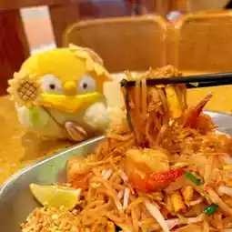 Chose a lunch set😙 Thai cuisine must-eat Thai fried Phnom Penh Noodles🤤 The plate is quite special and creative🥴 Very rich in many plump and thick shrimps😋 Eat crispy and bouncy, fresh and unparalleled🫶Phnom Penh noodles dipped in Thai sour and spicy sauce, eat spicy and delicious🌟Spicy friends can mix with more spicy powder next to the plate🤭📍