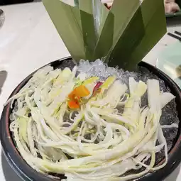 The grass carp slices are thin and translucent. When placed in the pot for a while, the slices curl up, and the texture is firm with a slight crunch.