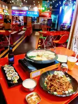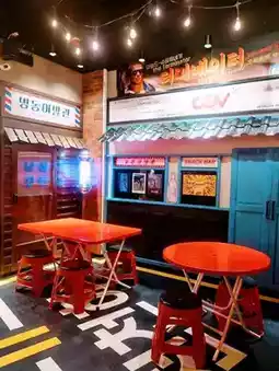 🇰🇷Popular Korean photo restaurant Bingo & Cook has moved into Langham Place📸 With a Korean cloth tent carriage theme, it restores the street flavor of Korea's Tai Pai Dang: cinema, phone booth, store, street sign, hair salon, etc., colorful decorations with K-Pop, cute and good feel🍻😍