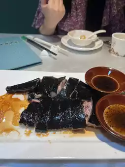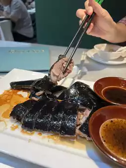 The restaurant chef tirelessly applies black truffle sauce and homemade sauce on the surface of the roast goose during the cooking process, resulting in this black, crispy and tender glass roast goose. When you put it near your mouth, you can already smell the charming aroma of black truffles.