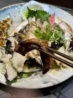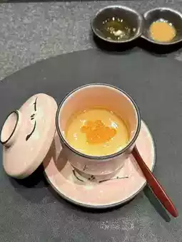 The tea bowl steaming is just right to clear the taste buds, adding salmon broth, salmon caviar on the top, wood ear threads on the bottom, tender and crispy.