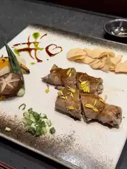 A4 Wagyu and pork thinly grilled, the master really carefully rolled, neat and full, the ingredients package is very good, no leakage out. There are strips of wild mushrooms inside, and they are crispy when you bite them. It's delicious. The sour sauce, soy sauce, and sesame sauce are useless.