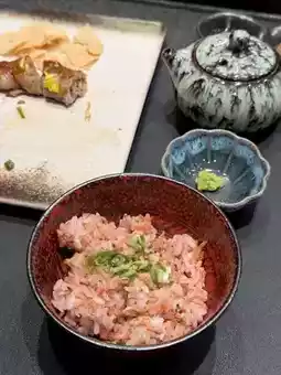 After drinking a bowl of hot bean curd soup, we were greeted by the cherry blossom fried rice, and the rice was fried in a few gestures. The master advised us to eat half of it first, and add the other half with salmon soup Wasabi to make tea-soaked rice. One meal and two meals is not monotonous at all. Finally ate the tofu ice cream, very satisfied, the only picky is that the ice cream can be bigger balls!