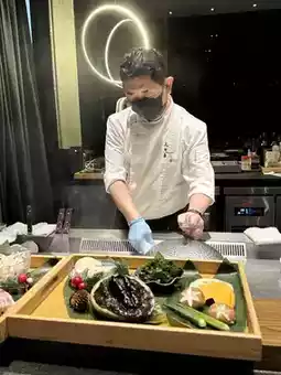 As soon as I sat down, I saw the busy figure of Master Matsunaga preparing the ingredients. Japanese masters always have that kind of honest and shy, which makes people feel like they are really back in Japan! As a bacon lover, I chose the Australian black-rimmed bacon goose liver and beef set for two.