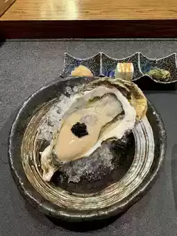 Entering the theme first comes Hiroshima oysters with caviar, large and very plump, creamy with seawater texture in the mouth for a long time.