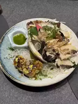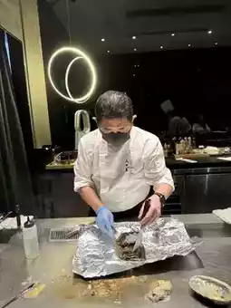 Australian wild black-sided bacon is really rare because the stock is expensive and not many restaurants outside serve it! Rarely meet, of course to eat! ! ! It is really giant, the size of my face! ! The master has already removed the shell with just a few gestures! The bacon is turning back and forth on the iron plate very vigorously.