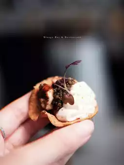Caviar with blue cheese apple crisps - which also added honey and walnuts