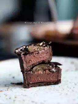 It looks a little like a mooncake cut is stuffed full of dark chocolate but not afraid of greasy ~