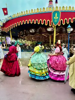 The highlight is the "Let's Get Wicked" villain-themed show 😍, which combines song, dance 💃, and acrobatics for a visual and auditory feast. The vibrant lights and energetic performers immerse everyone in the magical world of Disney 🥰.