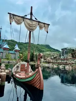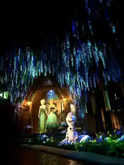 This boat ride is very fun and definitely not to be missed, but it also has the longest wait time in the park. Accompanied by familiar Frozen songs, visitors ride a small boat through magnificent scenes, drifting from the town to the forest, and then heading to Elsa's ice palace. The beautiful scenery along the way is breathtaking😍.