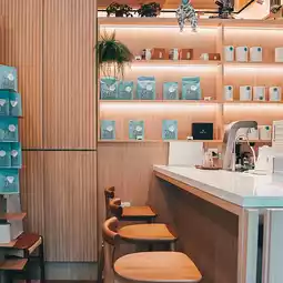 The store is bright and colorful, with multiple seats and a variety of carefully selected coffee beans. It specializes in hand-brewed coffee, allowing customers to experience different flavors.