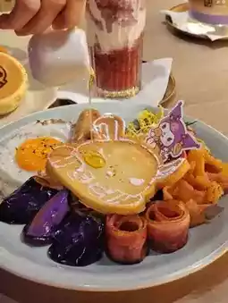 Gathered with friends at this coffee & pancake shop, of course, because they are having a limited-time collaboration with Kuromi until December 31st. The restaurant's decor and food are all themed around Kuromi and Baku, perfect for fans to take photos and get likes. The Central branch is even the flagship store for this collaboration.