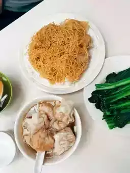 When we entered the store, the boss saw that we didn’t know what to order, so he gave us a menu with pictures. After ordering, the food was served quickly. The whole shrimp wontons were thin and juicy, and every wonton was delicious. Big and plump, the lo mein paired with wonton soup tastes just right but not too bland, highly recommended.