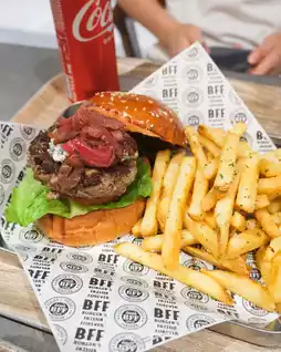 It turns out that the food court at the bottom of Hilton has such a great burger shop 🍔~