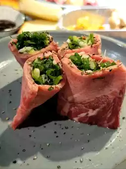 Korean BBQ sensation: Thick-cut green onion grilled beef tongue and premium Wagyu beef