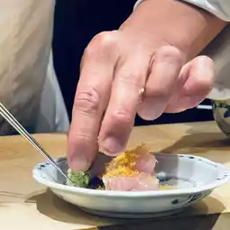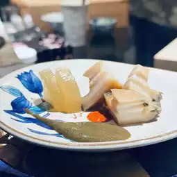 The tendon is incredibly fresh. Marinated in soy sauce, it has a slightly salty, briny flavor and a soft, smooth texture. The yuzu peel and wasabi add a refreshing flavor.